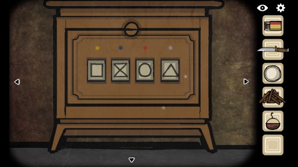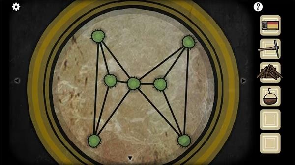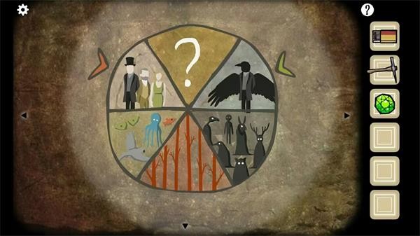 来到对面,完成墙上的解谜(根据石墩上的图形,将柜子上对应的图形移到石墩上即可)