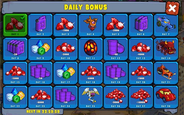 5、每天签到还可以领取砖石奖励和各种道具。