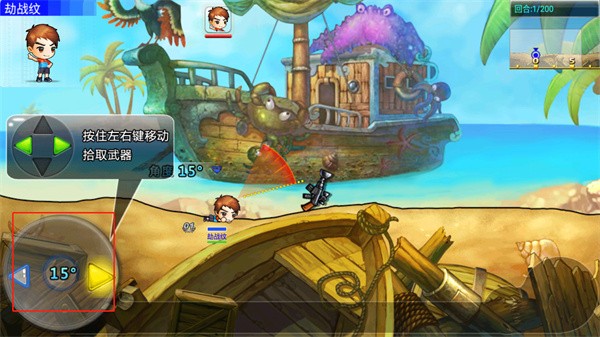 8、在按住游戏右下角的开炮,等游戏下方的力度到达蓝色区域即可开炮;