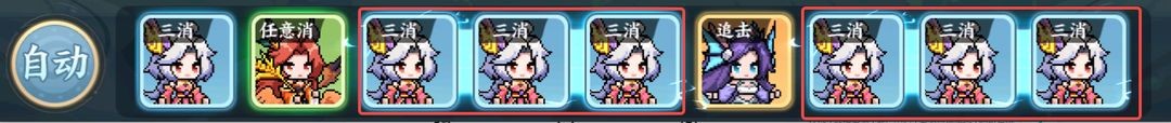 这类英雄在战斗中的最强技能效果,需要依靠自身的三消来触发,即常见三消游戏中的三连消除。