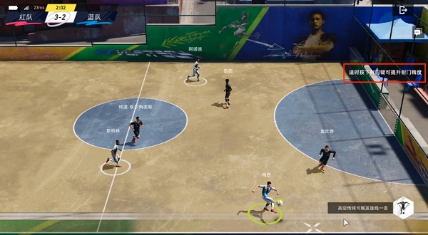 同时,射门的球员可以通过在适当时机按下射门键来提升此次射门的精度,按下射门键的时机越接近射门触球的一瞬间,则射门精度越高。