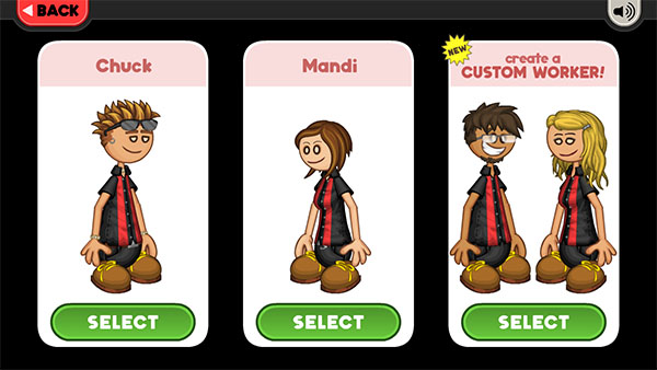 ※进入游戏后选择角色,可使用默认人物Chuck或Mandi,也可创建自定义角色。