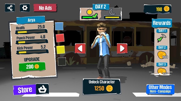 您可以在接下来的2个级别中使用武器,并花费硬币来升级您的角色。