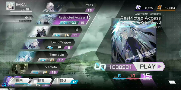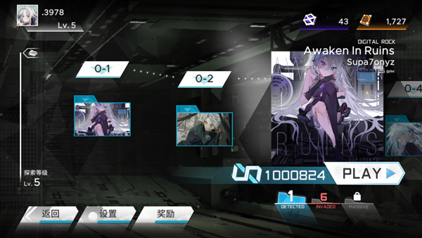 1、打开范式起源下载,进入游戏如图,玩家可自由选择曲目,以及难度进行挑战;