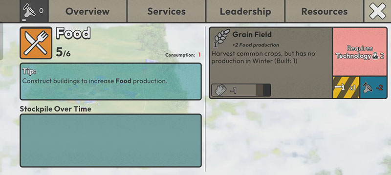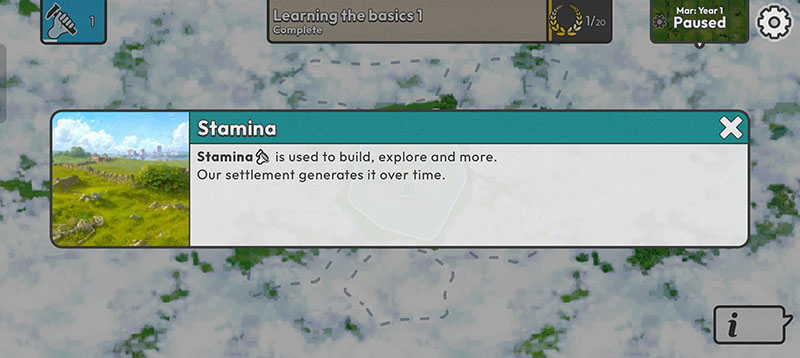 2、体力(stamina)用于建造、探索等。定居点会随着时间的推移产生体力。