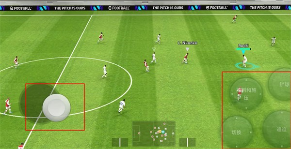 6、开始游戏,游戏左侧可以移动球员的位置方向,右侧可以对球员进行动作设置