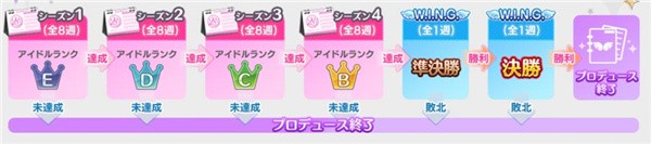 玩家的目标就是在期限之前达成升级条件,并在育成最终的WING比赛中获取胜利。(见下图)