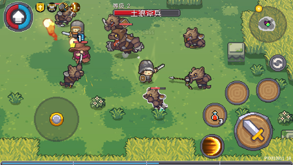 4、等待一会加载进入游戏,游戏采用横版操作,左边轮盘控制角色移动,右边则为工具、技能等键位;