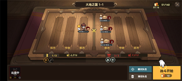 4、在战斗开始前需要布局自己的作战队伍,你可以自定义,也可以采用游戏建议的队伍,选择好后点击右下角的战斗开始即可