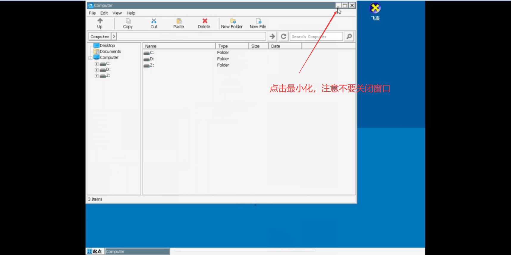 1.把Computer窗口最小化,ps:Computer窗口不能关闭,否则游戏会出现闪退情况