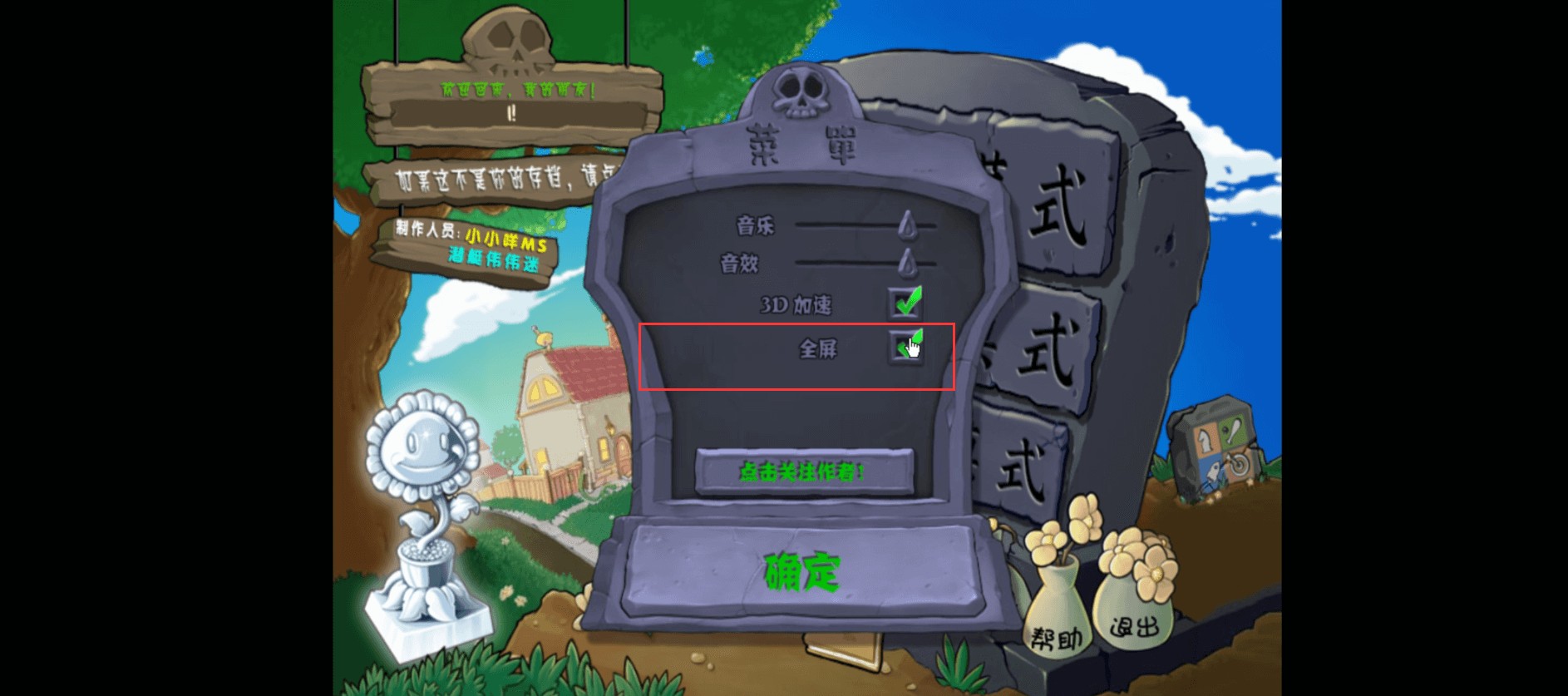 2.勾选‘全屏’