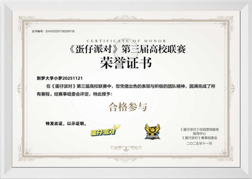 本次系列赛事的顺利开展与广泛影响,得益于赛事与校园文化建设的深度融合。赛事不仅深入学生群体进行广泛宣传,也获得了【团中央第二课堂】的认可与支持,所有参赛选手均获得了由“第二课堂”颁发的荣誉证书。这不仅极大提升了赛事的正规性与选手的荣誉感,也肯定了蛋仔高校赛事在锻炼学生群体当中产生的积极价值。